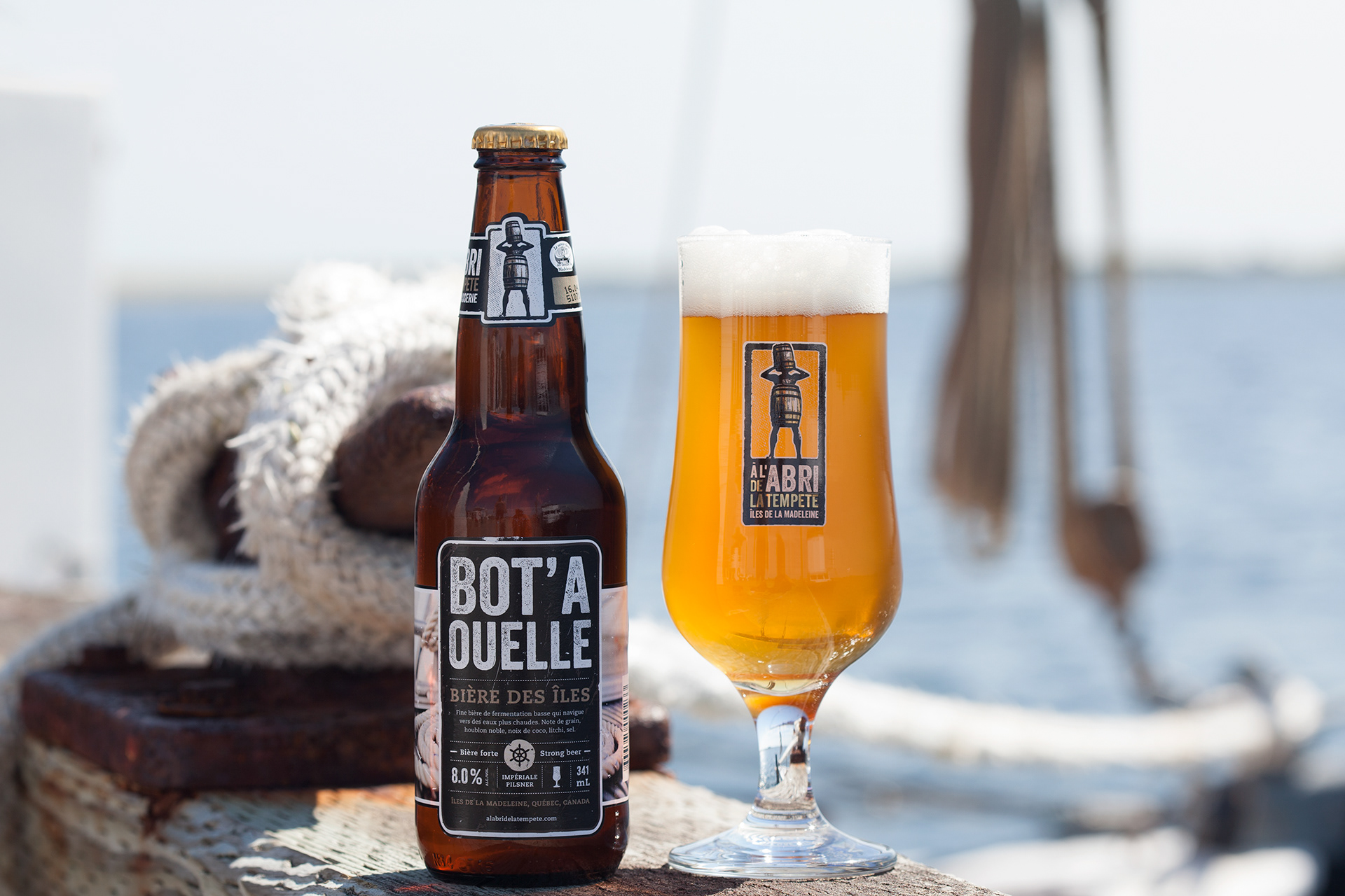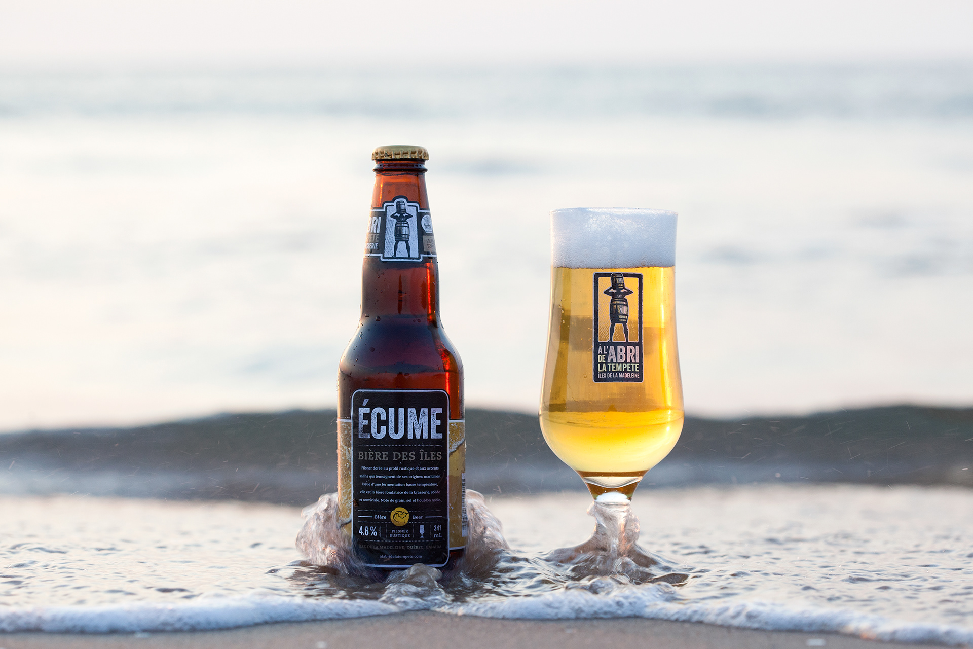 Photographies de produits pour la microbrasserie À l'abri de la Tempête Iles-de-la-Madeleine, Québec.